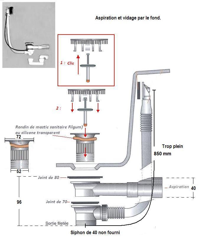 L'aspiration de la pompe EAU est intégrée dans la bonde de vidage.