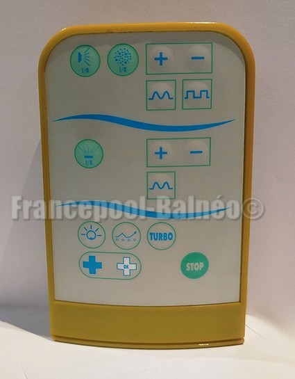 Télécommande pour baignoire balnéo Polyroc Embruns - Remise en jeu et parfaitement fonctionnelle. Livrée avec un pile neuve de 9 volts.